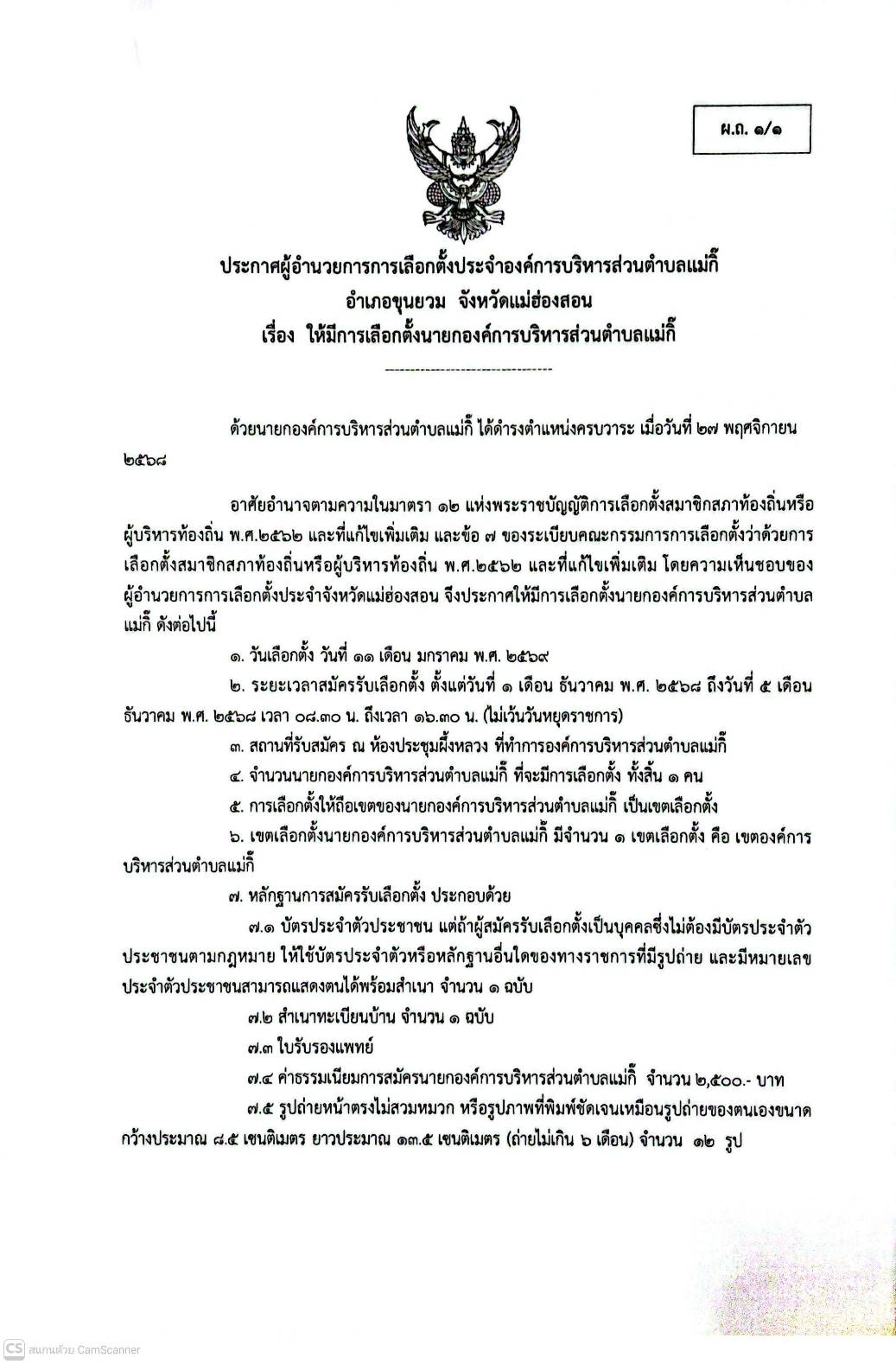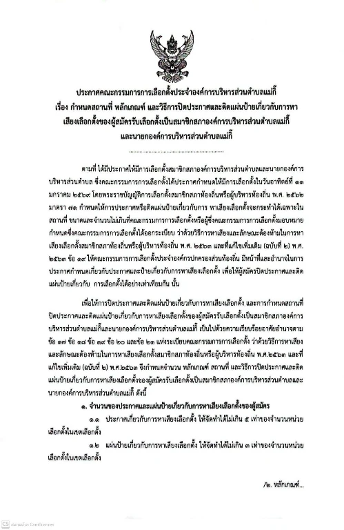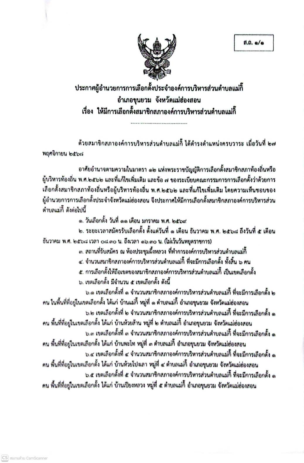 ประกาศคณะกรรมการการเลือกตั้งประจำองค์การบริหารส่วนตำบลแม่กิ๊ เรื่อง กำหนดสถานที่ หลักเกณฑ์ และวิธีการปิดประกาศและติดแผ่นป้ายเกี่ยวกับการหาเสียงเลือกตั้งของผู้สมัครรับเลือกตั้งเป็นสมาชิกสภาองค์การบริหารส่วนตำบลแม่กิ๊และนายกองค์การบริหารส่วนตำบลแม