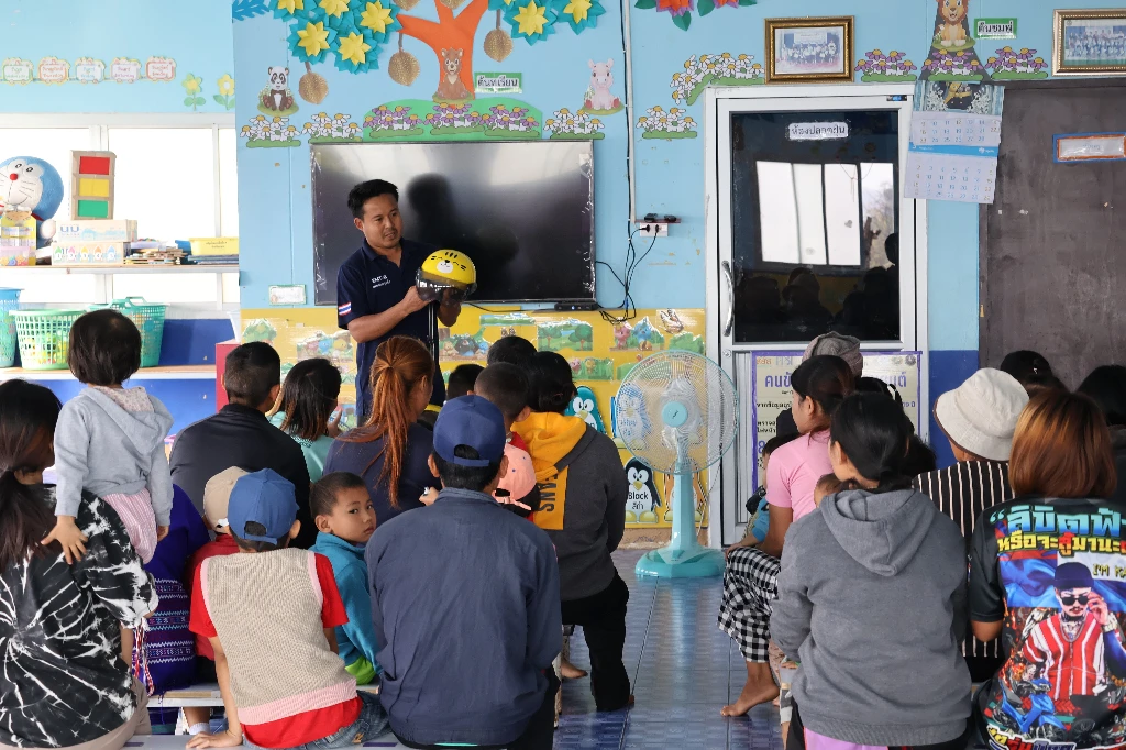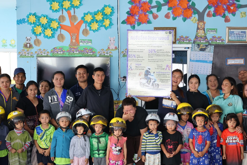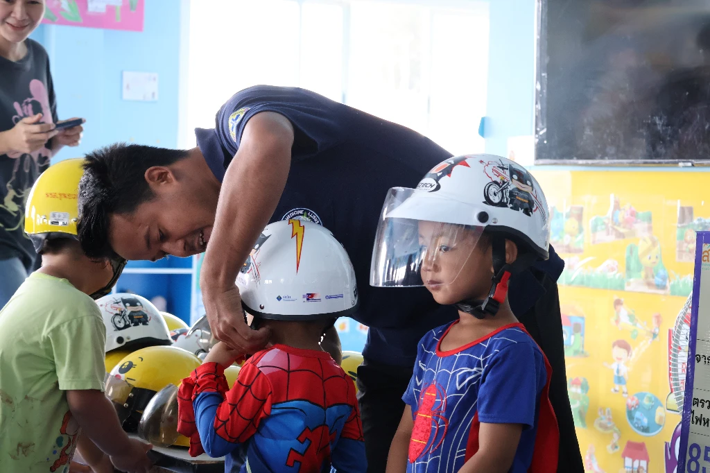 จัดโครงการสร้างวินัยจราจร ส่งเสริมการสวมหมอกนิรภัยในเด็กปฐมวัย กำหนดเขตสวมหมวกนิรภัย 100%